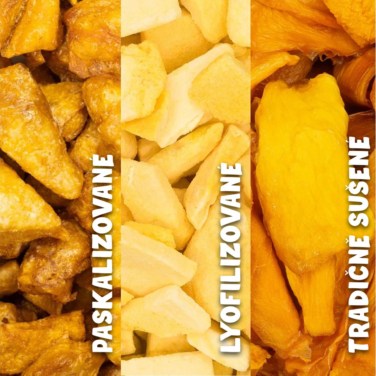 Že diamanty vznikají pod tlakem? Pak jsem diamant mezi mangy! Jsem křupavé díky paskalizaci, tam mě sušili pod tlakem, dokud se ze mě nestala ta nejovocnější křupka. A chipsy můžou jít brečet do kouta!