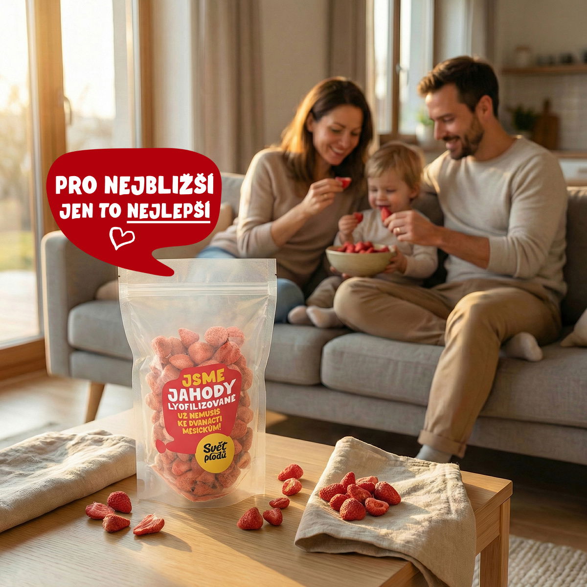 V létě nás možná máš na zahrádce, ale pokud Tě přepadne chuť i mimo sezónu, není problém! Ve Světě plodů nás najdeš vždy v plné formě. Křupni si naše slaďounké, červené plody.