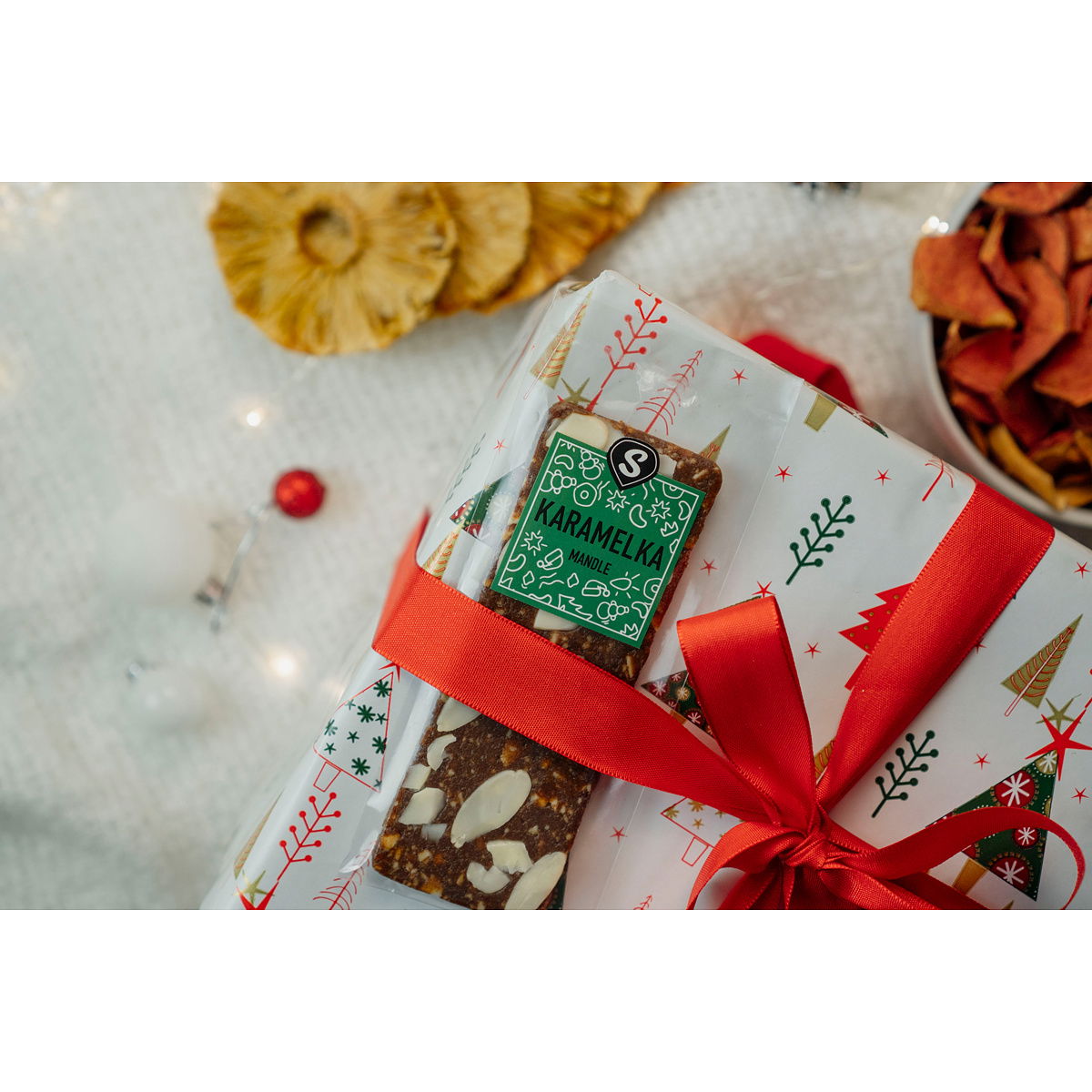 Mandlovou karamelku jsme vyrobili z naší datlové pasty a křupavých nepražených mandlí. Je doplněná o karamelový pudr, který jí dodává jemně sladkou chuť. Pro jemnější strukturu jsme přidali kokosový olej, a aby celá tyčinka měla ještě intenzivnější vůni, pokapali jsme ji trochou karamelového přírodního aroma. Z tyčinky se tak stal rychlý zdroj energie pro každou příležitost, který se vám navíc hravě vejde do každé kapsy. Svačit zdravě a přitom sladce nikdy nebylo jednodušší!