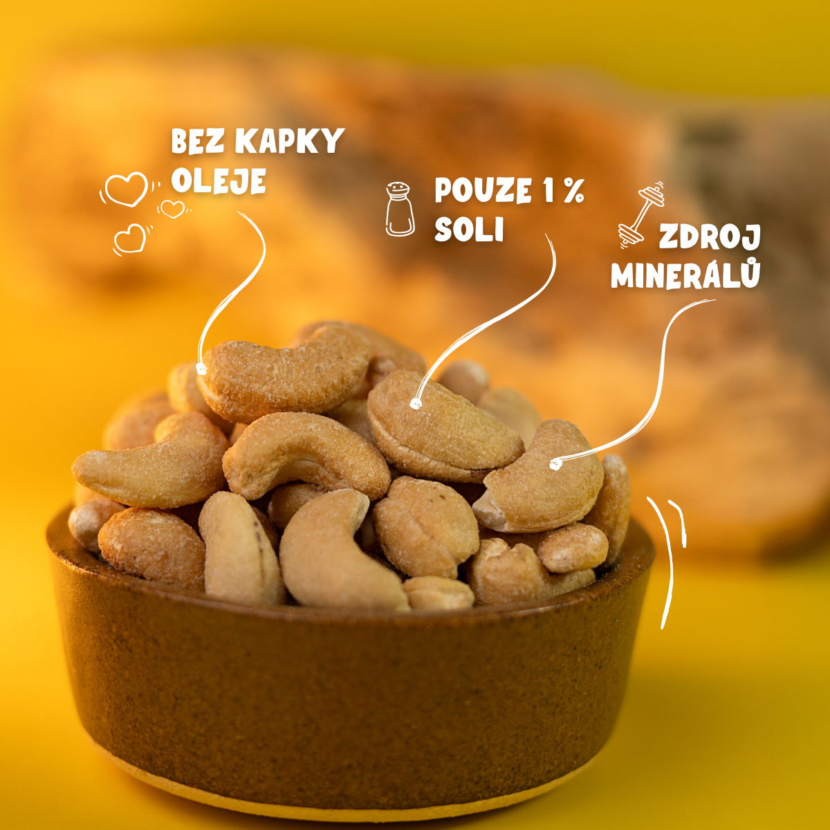 Pražili nás na sucho bez oleje. Jsme krásně opálené a chutné díky špetce soli. Nejlepší jsme k slaďoučkému vínku, se kterým vytvoříme hotový festival chutí.