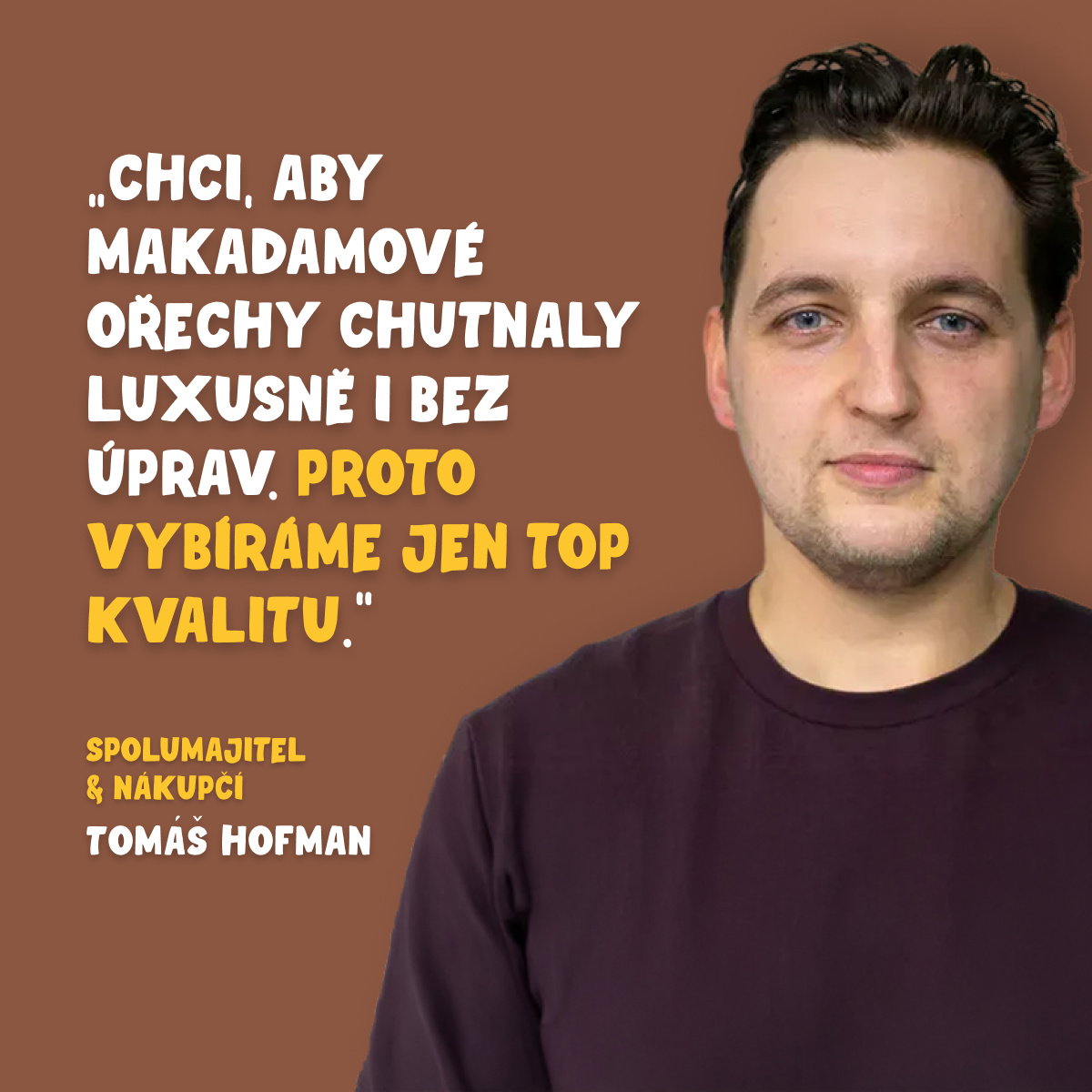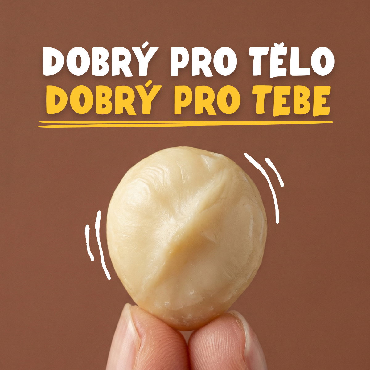 Přispěchal jsem za Tebou až z nejjižnější části Afriky, kousek od Mysu Dobré naděje. A stálo to zato! Jsem ten nejzdravější, křupavý, máslový ořech se smetanovými tóny, kterému prostě neodoláš.