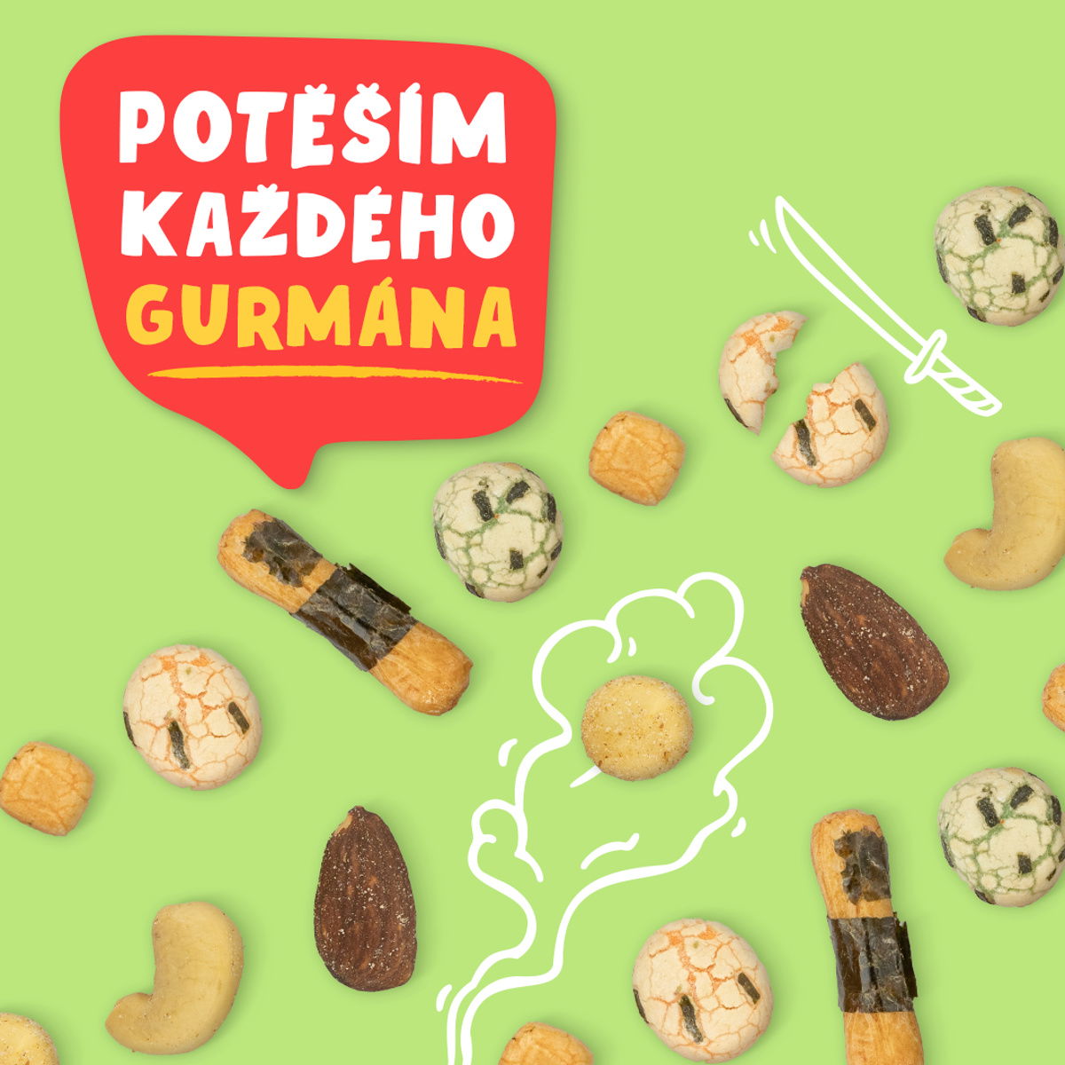 Ucítíte tóny mořské řasy, sójové omáčky, sezamu nebo třeba chilli. V některých kouscích vás překvapí pražené arašídy uprostřed, zpravidla v těch kulatého tvaru. Narazíte na sladké, slané i jemně pikantní kousky, každý je úplně jiný, ale společně si skvěle rozumí. Otevřete si MYX Samurai místo brambůrků při večerním filmu nebo při posezení s přáteli a nechte se unést chutěmi Asie. Na co ještě čekáte?