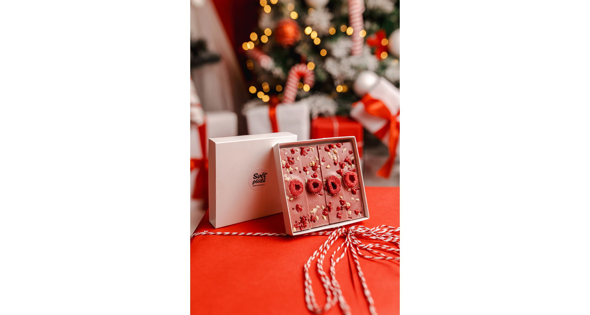 - plný jemné bílé čokolády a malin