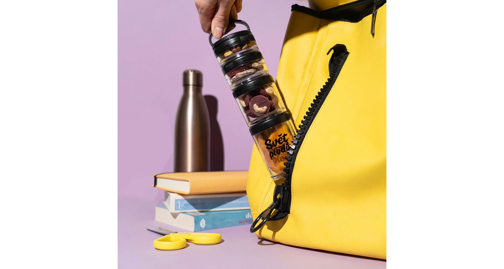 Hledáte svačinový box, do kterého byste schovali svačinu na cesty? Nebo snad dárek, který je originální a užitečný? Představujeme vám naši krabičku. Produktivní krabičku. Pro přátele Sváčonosič. Potěší kohokoliv – kamarády, příbuzné i vaše zaměstnance či kolegy. Je praktický a znovu naplnitelný. Zkrátka žádná hloupost na jedno použití, ale stylový parťák na každý den. Když ho navíc naplníte dobrotami ze Světa plodů, budou vás považovat za mistra zdravých svačin.