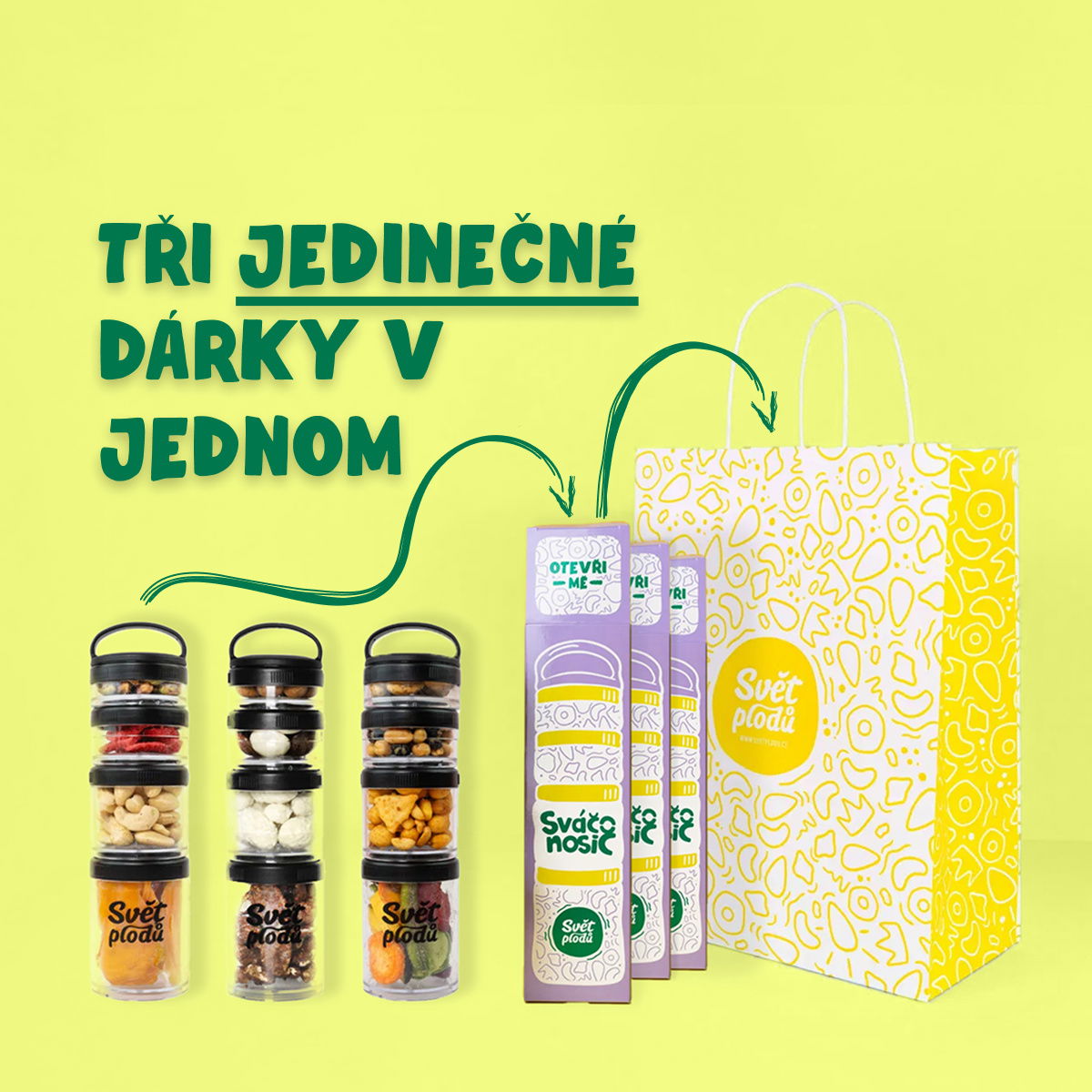 Tři dárky jednou ranou – daruj originální sváčonosič, který naučí Tvé blízké zdravě svačit. Jsou plné sladkých, slaných nebo přírodních mňamek, takže si každý najde to své, aby zahnal hlad i mlsné choutky.