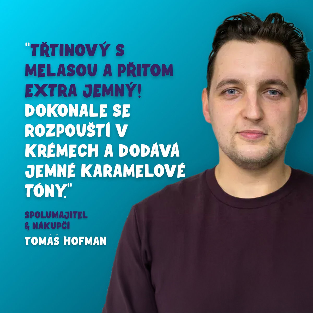 Jsem tak jemný, že se rozplynu na jazyku. Pomleli mě z třtinového cukru a díky tomu mám jemné karamelové tóny, který krásně doladí polevy, krémy i sladkosti. Můj zlatavý dotek bude ozdobou každého Tvého koláče!