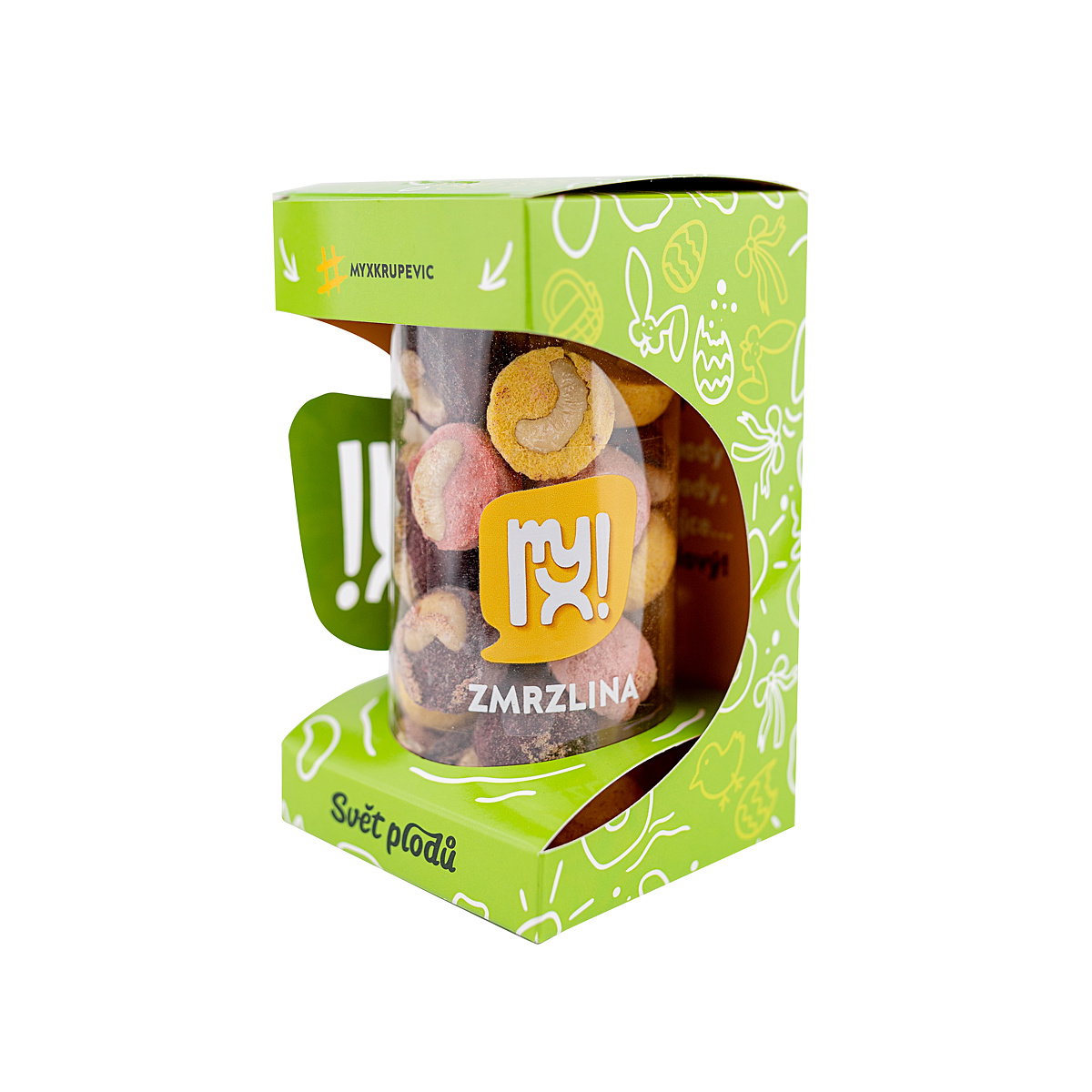Žádný vejce malovaný, koledníci letos chtějí zmrzku! Tak to mi podrž kornout, jsem totiž dárkově zabalený MYX Zmrzlinový kopeček, nadupaný sladkým ovocem s křupavými kešu oříšky a Ty máš letošní Velikonoce vyřešené.